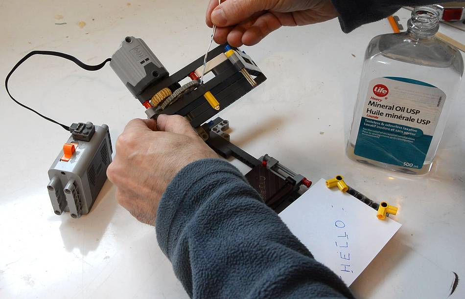 to accomplish that was to put a piece of lego shaft in a pencil sharpener.