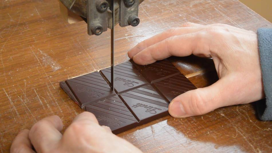 break between the squares. So I used a bandsaw to cut the squares instead.