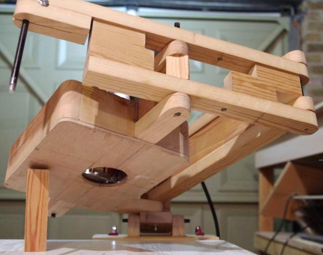From time to time, people ask if a plunge router can be used in the pantorouter or the 3D router pantograph. The problem is that the style of router with a fixed base and 3.5" (89 mm) diameter body is difficult, though not impossible, to get outside of North America. I always recommend against using plunge routers because the bulky base and handles really get in the way, though Miguel shows that this style of pantograph can be built using a plunge router.