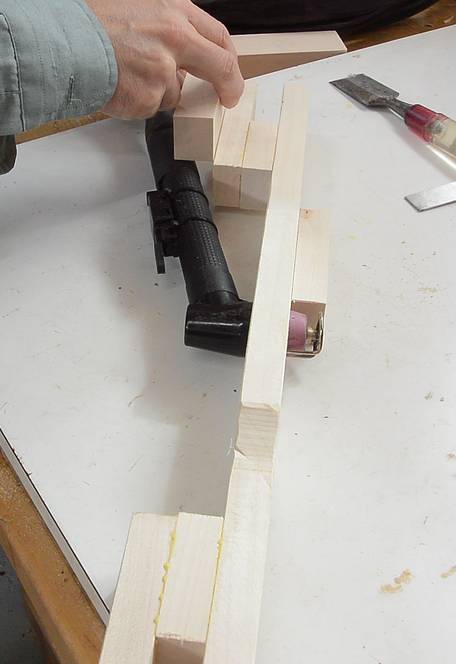 I gave the edges of the teeth a quick sanding on my old strip sander, and