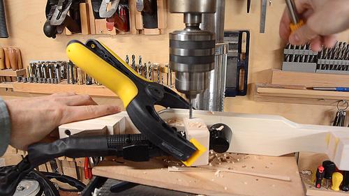 A piece of stainless steel shaft secures the block, and the torch in place.