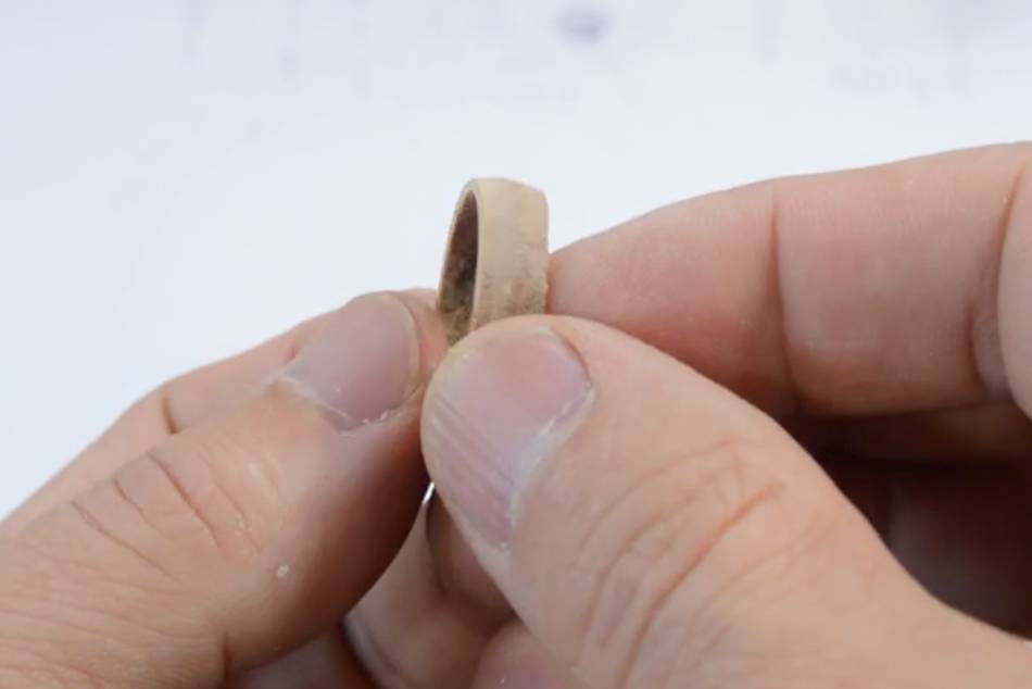 Here I'm using some 600 grit sandpaper to smooth the ring...