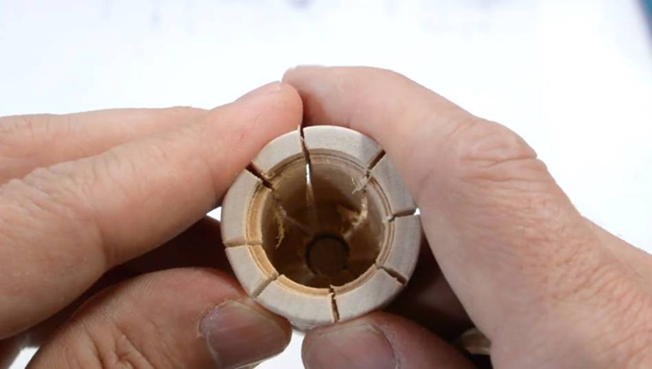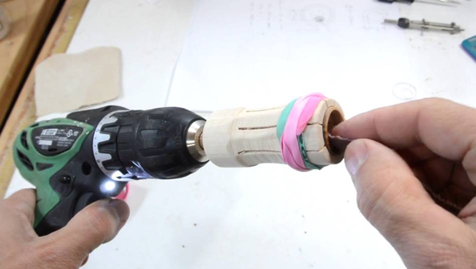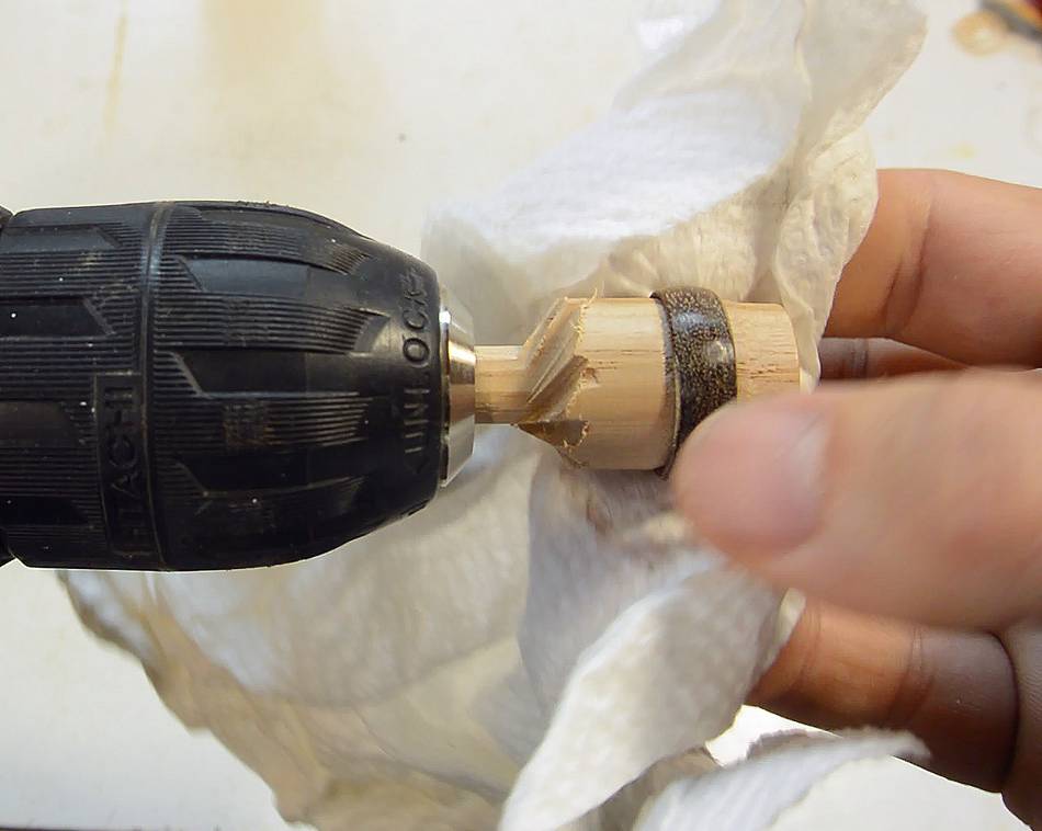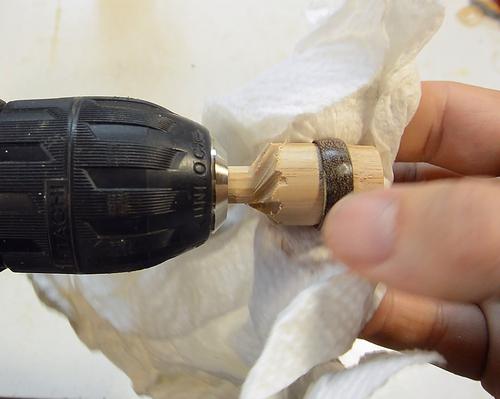 to 3/8" by spinning it against the fence, cutting a bit away with the