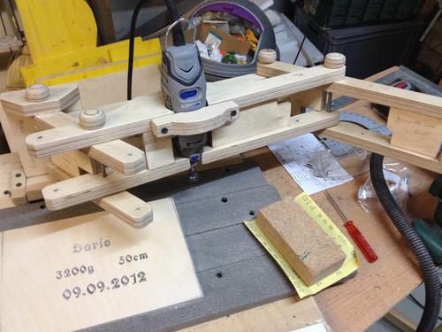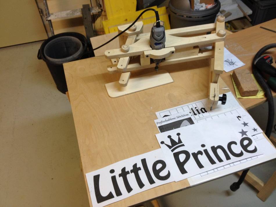 Pascal Zingg's pantographMany YouTube woodworkers have gotten X-carve CNC routers sent to them as a promotion, but then need to spend a day or more assembling it. And then they use them to make a sign or two, and they stop using it.For sign making, a pantograph can be a lot cheaper, and building one from scratch takes less time than assembling an X-carve. Of course, the X-carve can carve on its own, but chances are, you will be hovering over it with a shopvac cleaning up as it goes. You can cut much faster with a pantograph, so overall, even the carving itself can take less time with a pantograph than with a CNC router. Here, pictures of Pascal Zingg's pantograph: Pascal Zingg writes: Dear Matthias, I wanted to send you some pictures of my pantograph. I finally built it in august. With two babies at home there is not much time for projects :) Now I made some little projects cutting with a Dremel. I am actually really satisfied with the result. I love the design of your pantograph and I follow your blog with great interest. The day I'll have a table saw I will purchase more of your plans for sure. At the moment my saw of confidence is a simple jigsaw ;) Best regards from Switzerland, Pascal More reader built pantogaphs: Back to my woodworking website. |