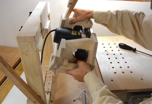 But checking with a square, I could tell that it was not square to the edge of the table. Also, plunging in and out, I could see the shaft moved to the side a little bit as the router moved forward and back, so the router axis was also not parallel to the plunge.