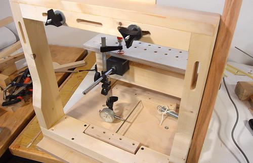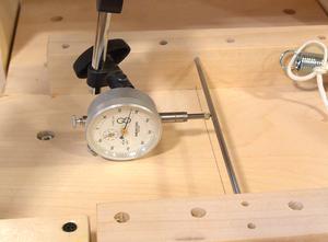 Checking the plunge sled accuracy. The main pivot for the pantograph
