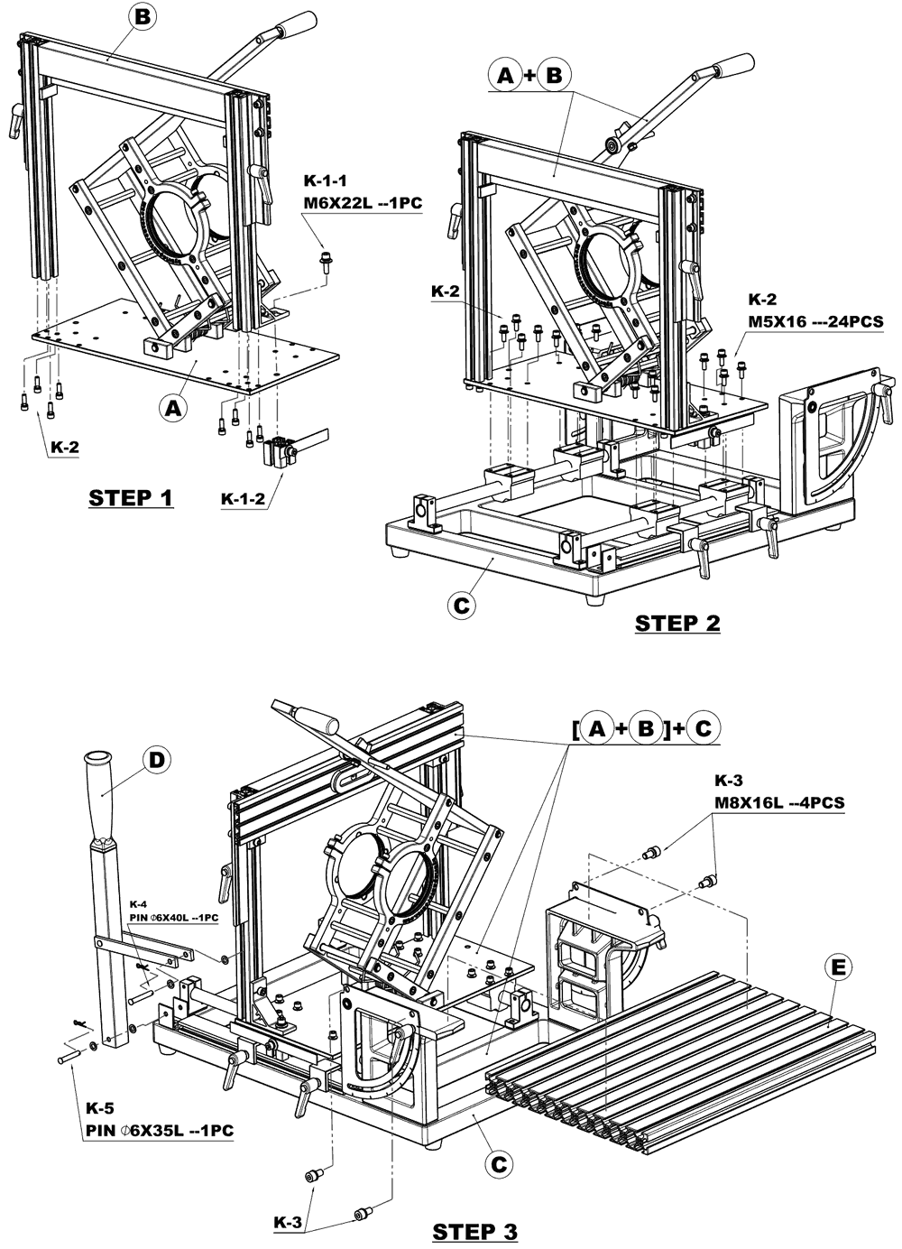 Screwing the pantograph base onto the linear bearings, which are already in