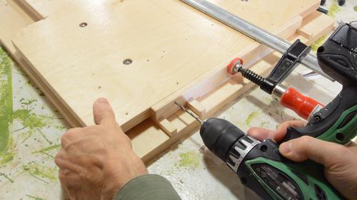 Sliding the top back in. After the initial 20 cm or so, the ball cages will have hit the end of their run, and a lot of force is needed to drag the sled all the way in. In fact, I ended up using a bar clamp to push it all the way.