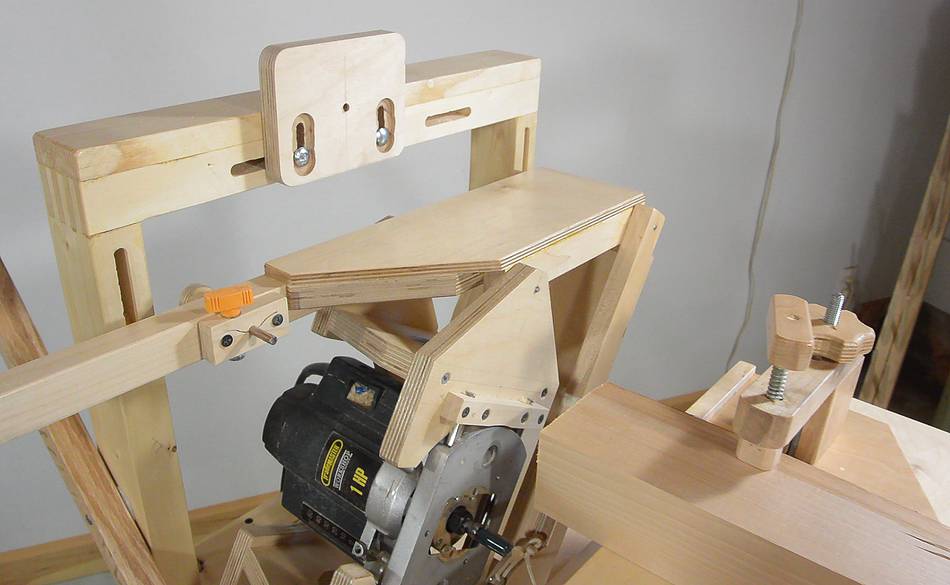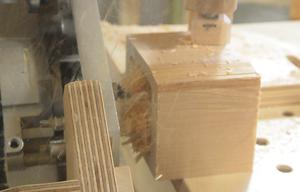 I'm routing the tenon on the end of a big piece of wood I picked out of