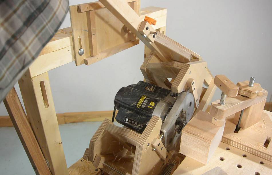 I get a lot of suggestions about adding dust collection to the pantorouter, but I don't know a good approach, nor have I seen one that is very good. There are dovetail machines with dust collection, and the Leigh FMT jig (which does mortises and tenons) has dust collection capability. But for a machine as flexible as the pantorouter, it's much more difficult. It would be possible to design dust collection shrouds for very specific operations, and if I had to cut 1000 tenons, I'd probably design one for that. But I cut so many different types of joints, and I want to be able to see and film the operation, so dust collection is just not practical.
