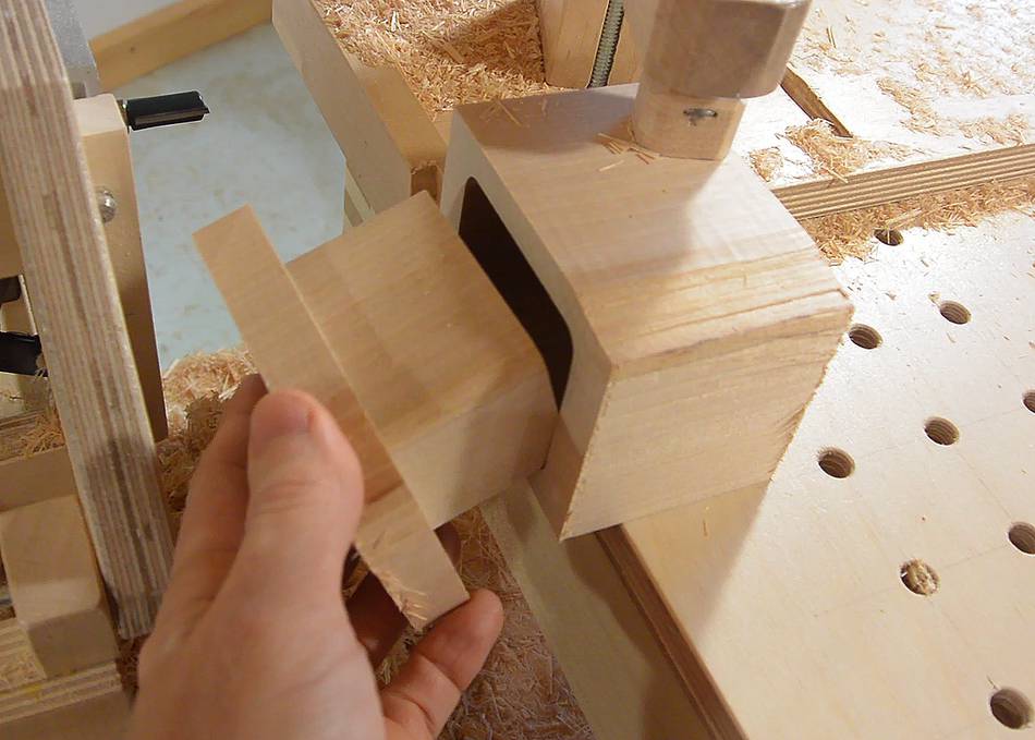 Testing the fit. Unfortunately, the tenon was a bit loose in the mortise.