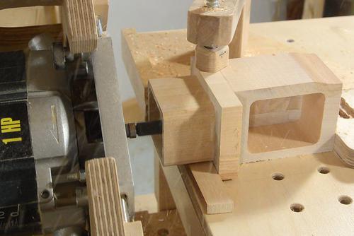 I made a big rectangular template for the tenon and mounted that on the template holder.