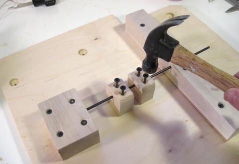 tap the screws so that their points make a divot in the wood.