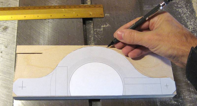 I used a 1:1 printout from my CAD model and traced it onto plywood to get the rough outline.