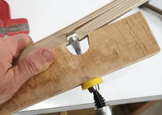 I cut a slot in a piece of wood, then carefuly whittled it down until it