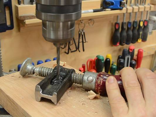I also drilled a hole in the side of the clamp for securing it to the wood.
