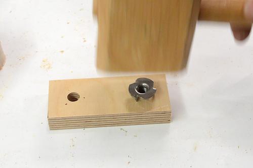 I pressed the T-nut in with a vise.