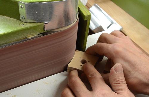 After I cut my workpiece into two sqares, I sanded each side concave and the