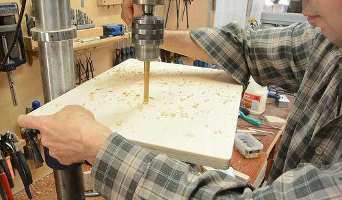 I then measured the hole layout on the table and drilled all the holes...