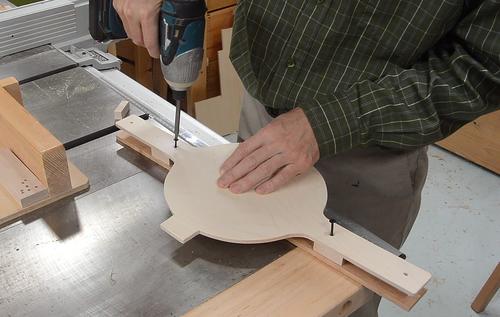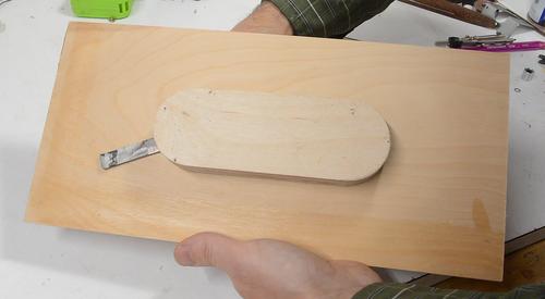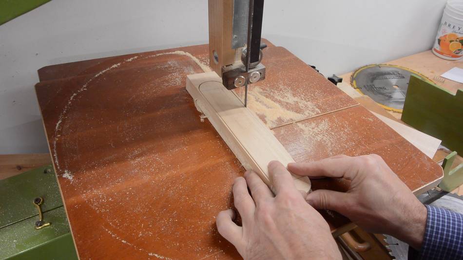 Next, an actual "template". I cut this out of a piece of hardwood, tilting the bandsaw table