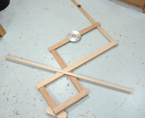 I cut out the pieces of wood for this and laid it out on the floor to make sure it's about