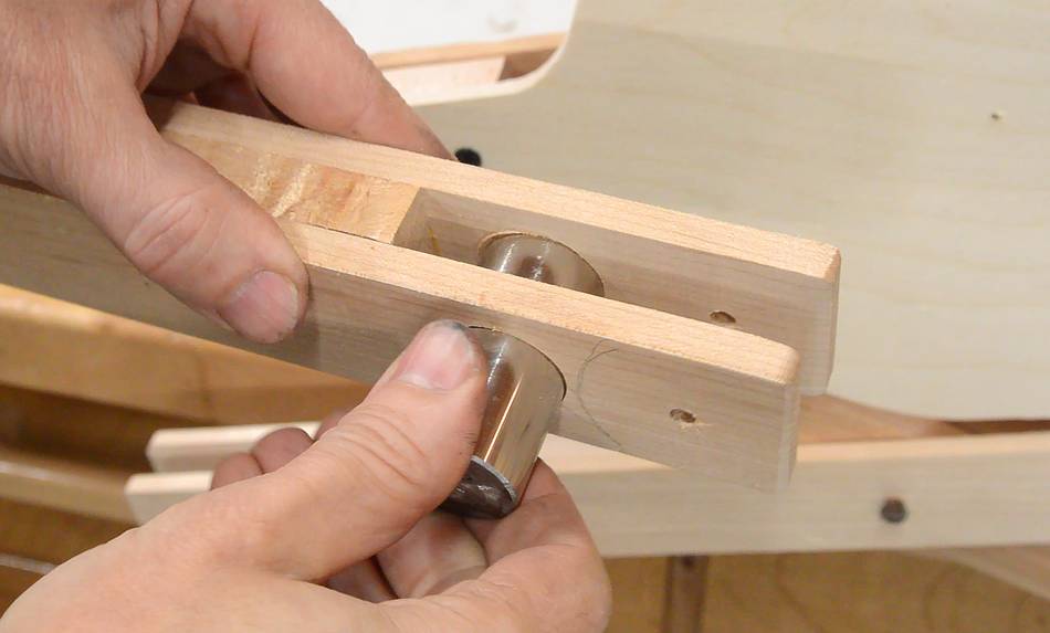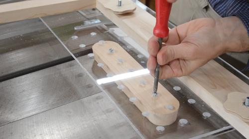 I made some wooden knobs the same shape as the ones to hold the template on the real one.