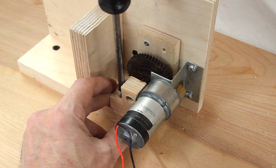 I had an old gear head motor with a gear on the output shaft, and I happened to have