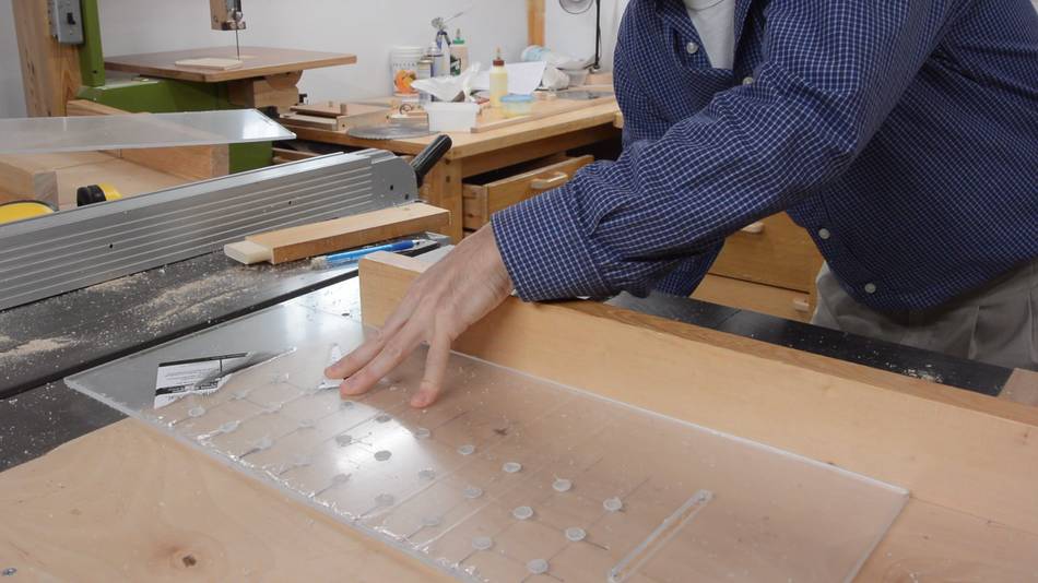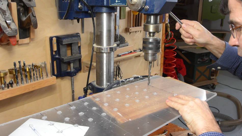 a piece of acrylic plastic and drilled a grid of holes in it, just like on the