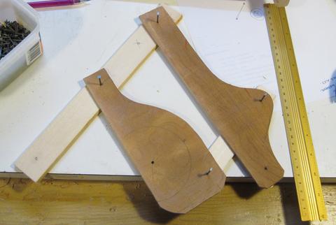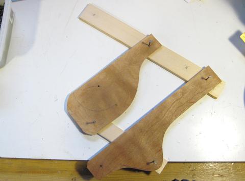 I cut up some scraps of wood to try out the geometry. I offset one of the links of my pantograph to get it out of the way.