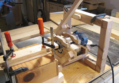 So the concept appeared to be workable. I was disappointed with the accuracy I got from it, but then again, I had just cobbled together a few rough pieces of wood to test the concept. I hadn't even attempted to make this machine rigid or precise.