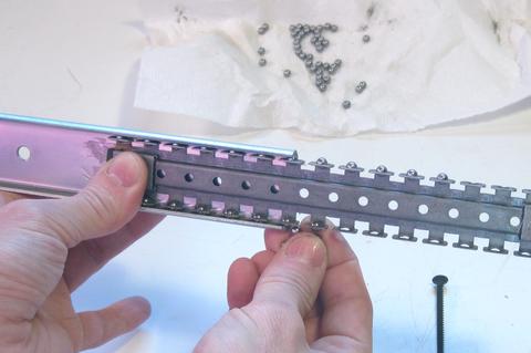 Be careful to capture all the ball bearing balls that will fall out when you slide the slides apart.