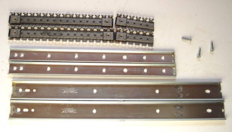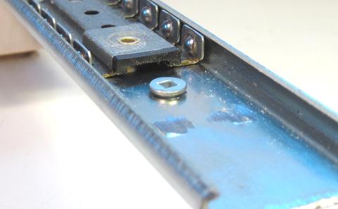 All that metal work with the gliders causes bits of abrasive and metal to get caught in the grease of the slides, so be sure to wipe all the grease off the slides and balls before reassembling anything. Also, don't forget to re-grease the slides before final assembly. I took the shorter of the ball cages and cut them off. I'll use a long plus a short ball cage inside each rail. The more ball cage inside the rail, the better. Seeing that I need less than 10 cm of travel out of my rail, I don't have to worry about my ball cages impeding slide movement.