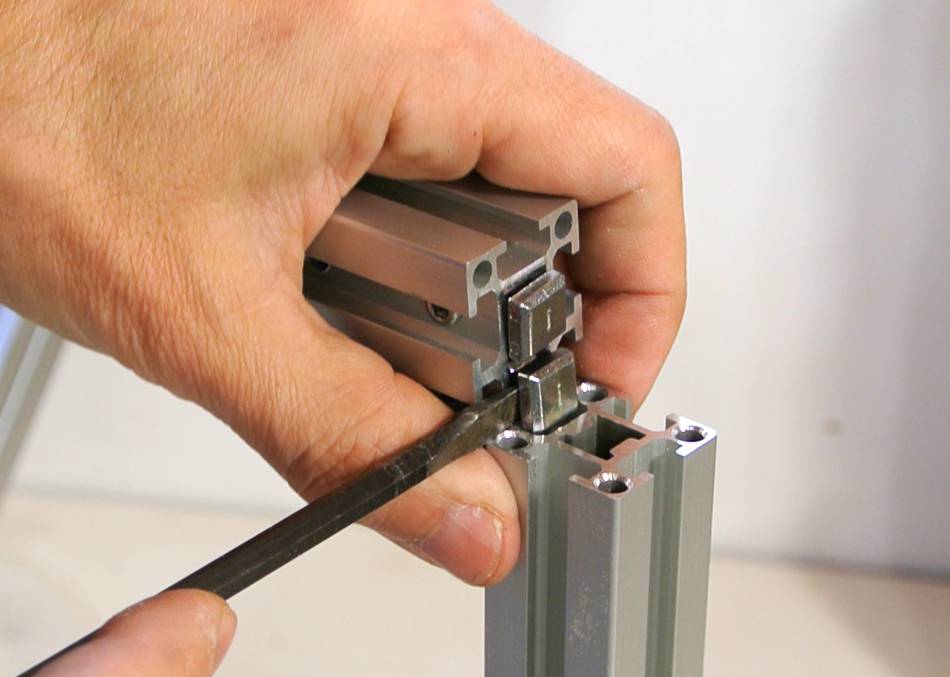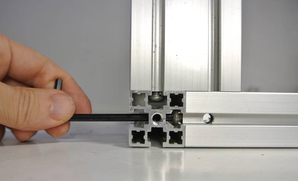 Holes in the frame rails allow the screws to be tightened with an Allen key