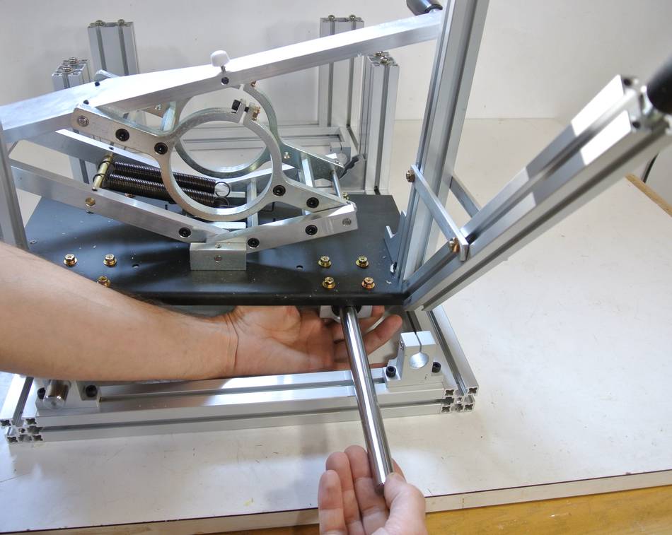 With the shaft in place, lift the plunge sled onto the frame.