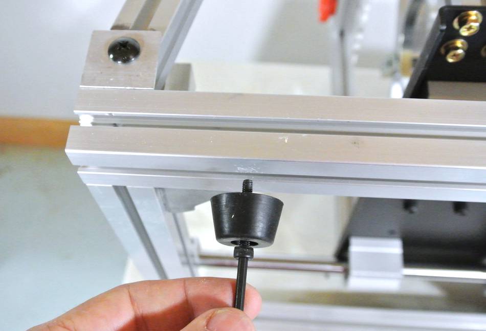 The feet are attached with small M4 screws to the bottom of the rails.