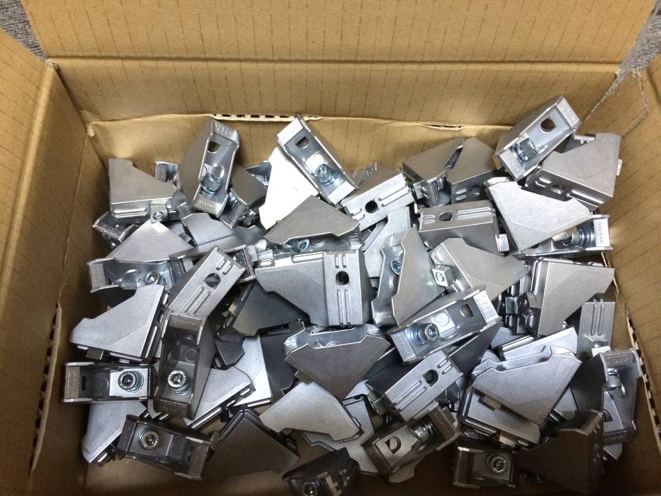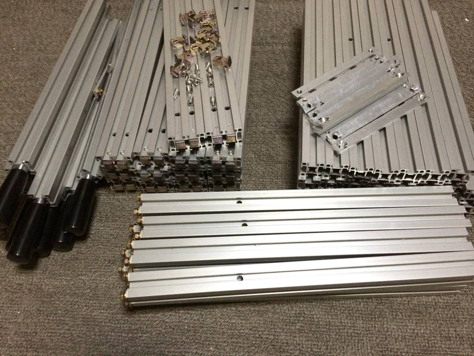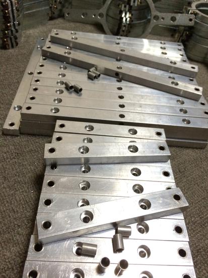 Below: Batches of aluminium rails, polished shaft, angle brackets and