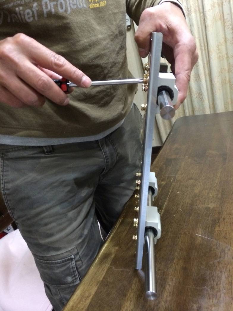 Mounting the linear bearings. A shaft inserted in the bearing