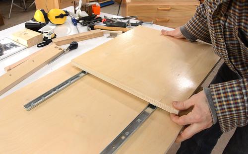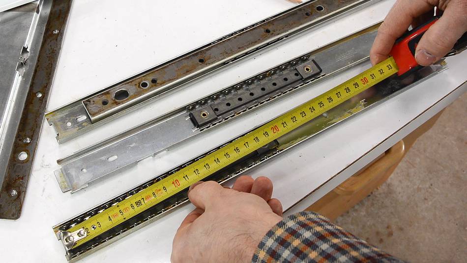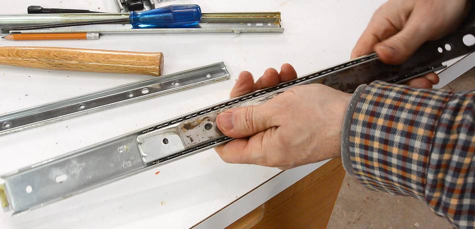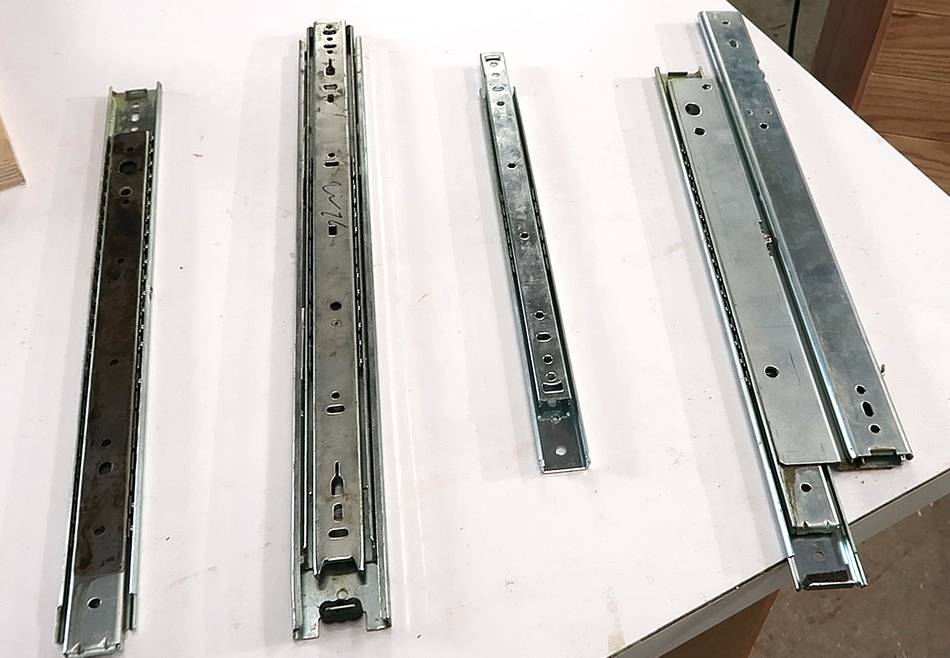 Two tier drawer slides are hard to get new. This one came out of an old desk. New slides that are suitable are center mount drawer slides and keyboard drawer slides, neither of which is full extension.