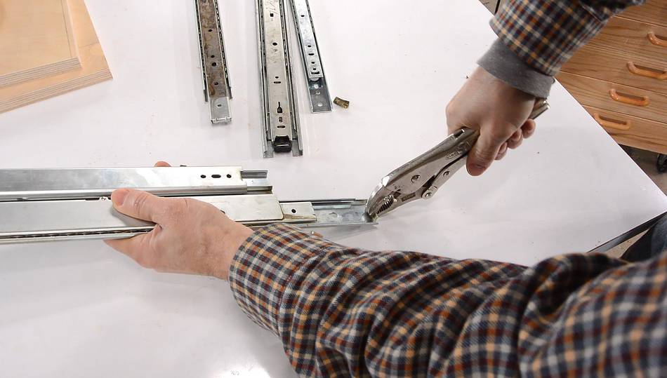 This needs to be done carefully. It's important to move the ball cage out of the way so the inner track won't get squeezed and bent, then squeeze, check, and if it's still loose, squeeze slightly harder, and repeat. I do this along the length of the entire track to make sure it isn't loose anywhere.