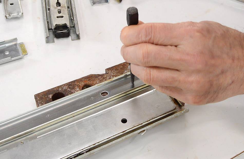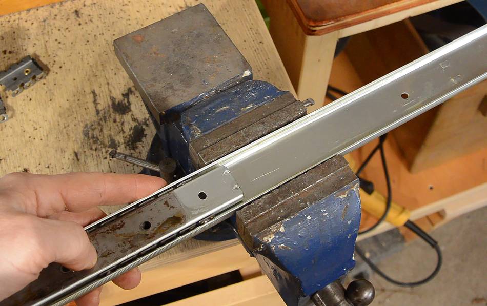 The two slides are spot welded to a Z-shaped profile. I center-punched