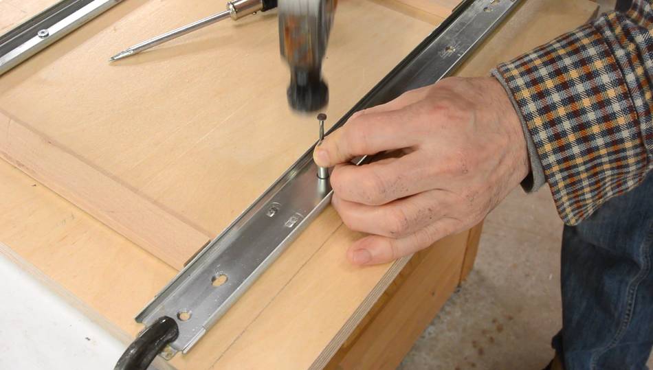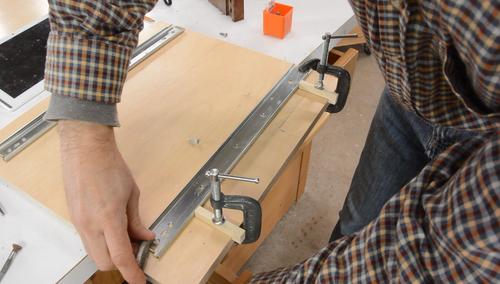 over the edge to position them, then drilling pilot holes and screwing it