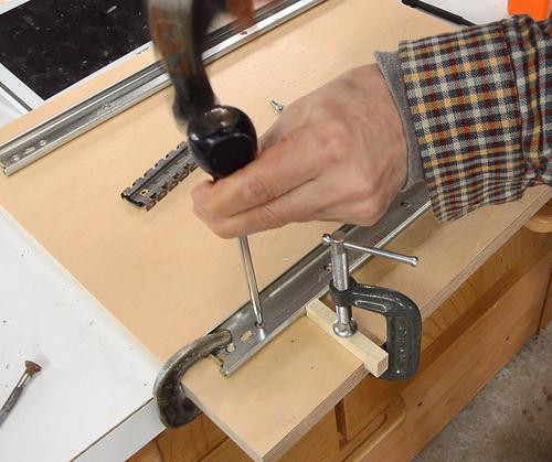 with a hammer. After that I drilled pilot holes for the screws (no picture