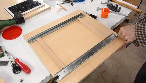 Then screwing it on, using #8 countersink wood screws.