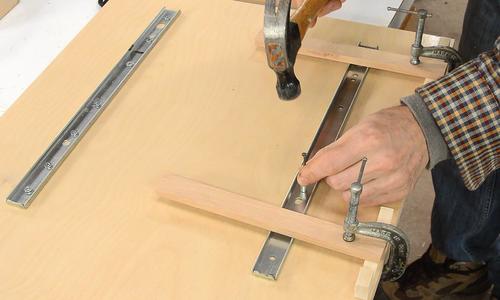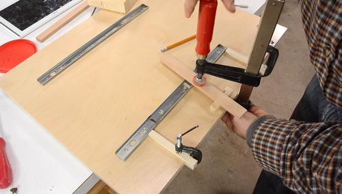 The base gets a strip of wood glued to it, about 8 mm from the side of the track.