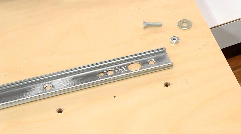 Track, countersink machine screw, washer and nut. The washer and nut fit into