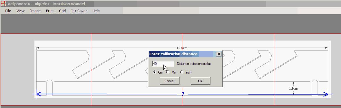BigPrint program. I then used a known dimension on the template to set the scale,