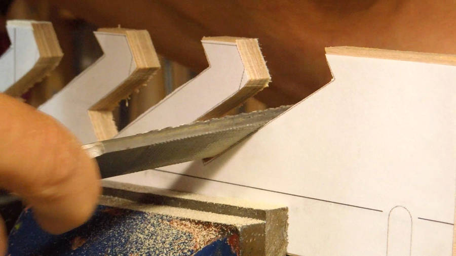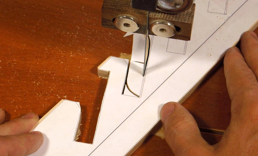 I pasted the template onto an 8 mm thick piece of plywoodd and cut it out on the bandsaw.