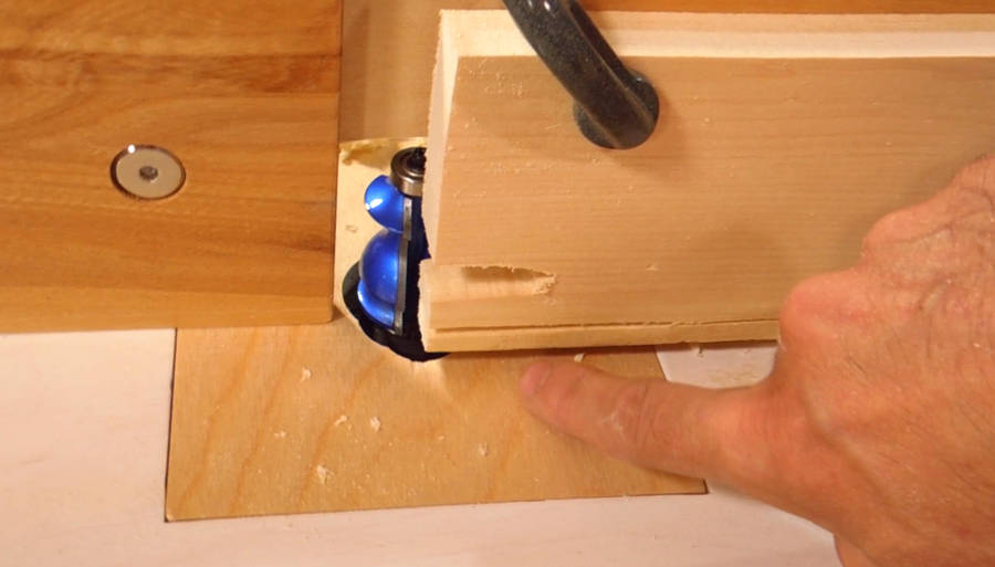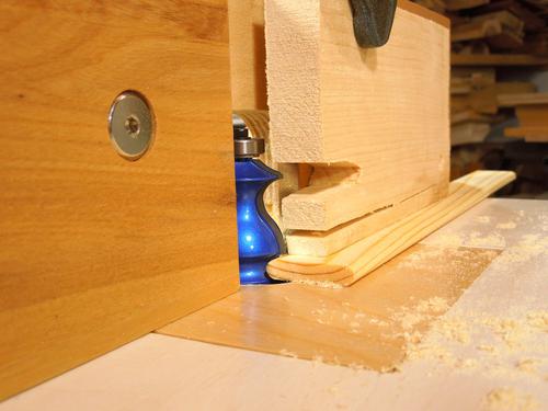 Cutting the beads. My router insert has a large-ish hole in it to accommodate