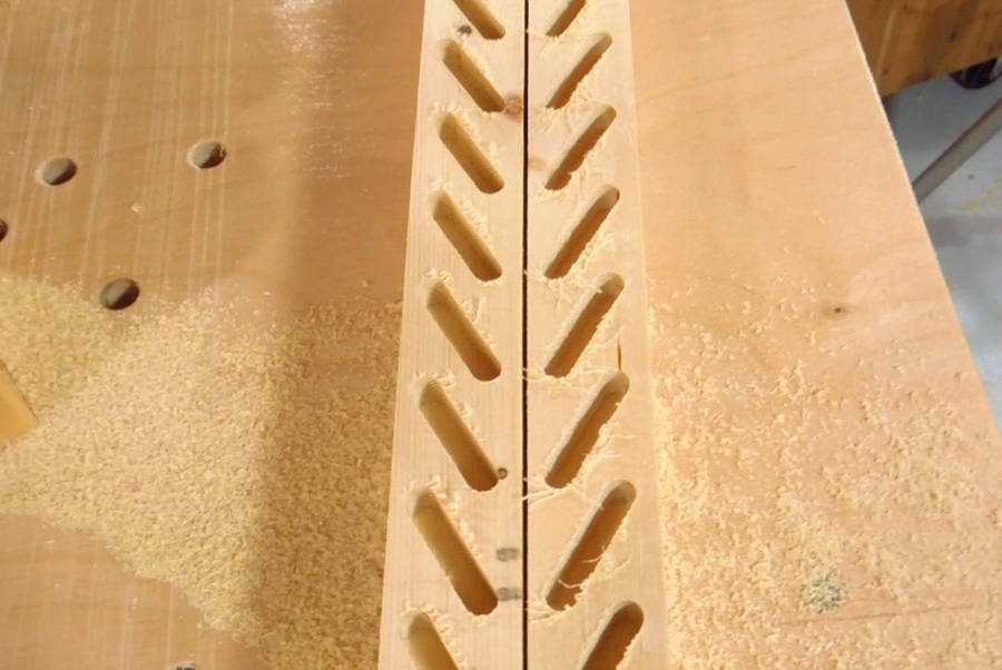 Once six slots are cut, I turn off the router, unclamp the workpiece, and