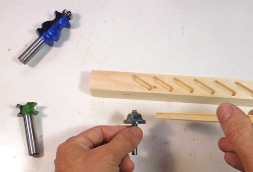 Looking at the router bits I had, I had a bit for the half round, but it had the wrong radius. I also had a roman ogee bit, with a 1/8" radius inside round that I could have used, but that would have taken two passes per side for each slat.